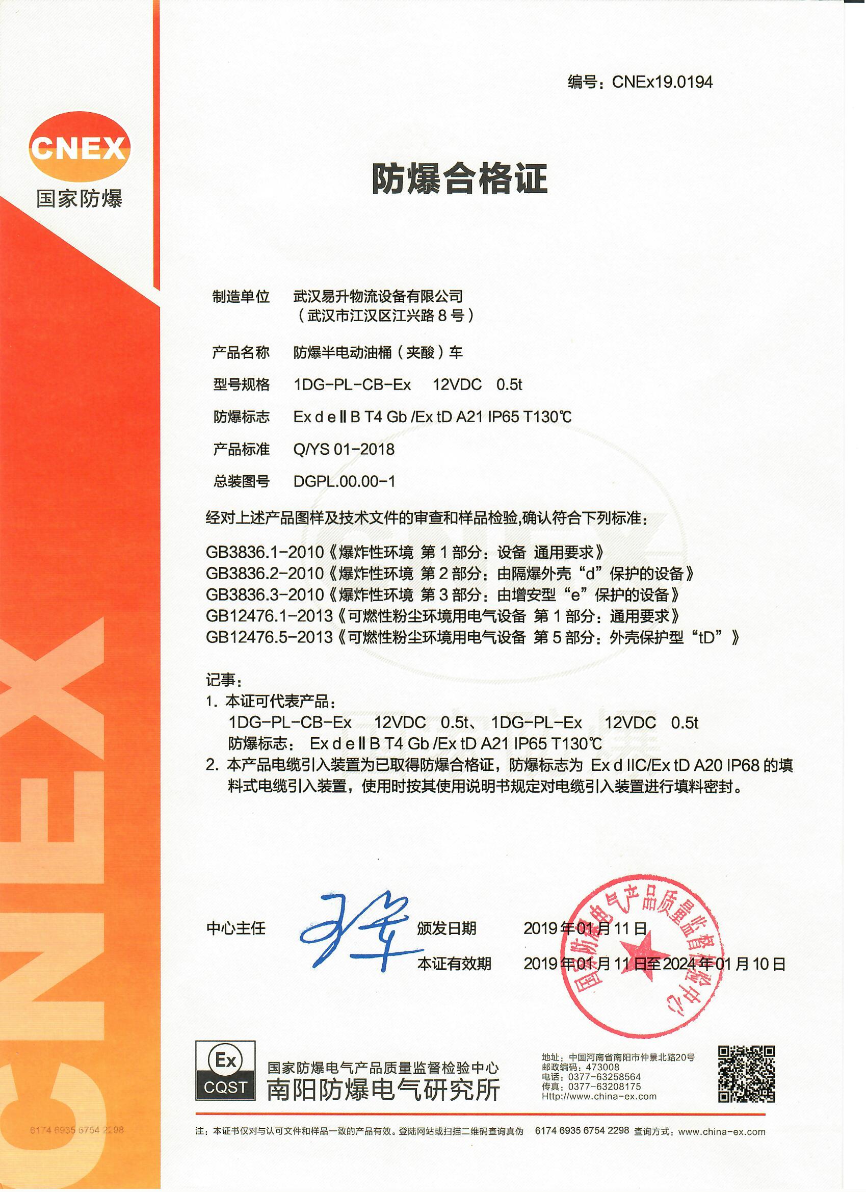 半电动油桶搬运车防爆证书
